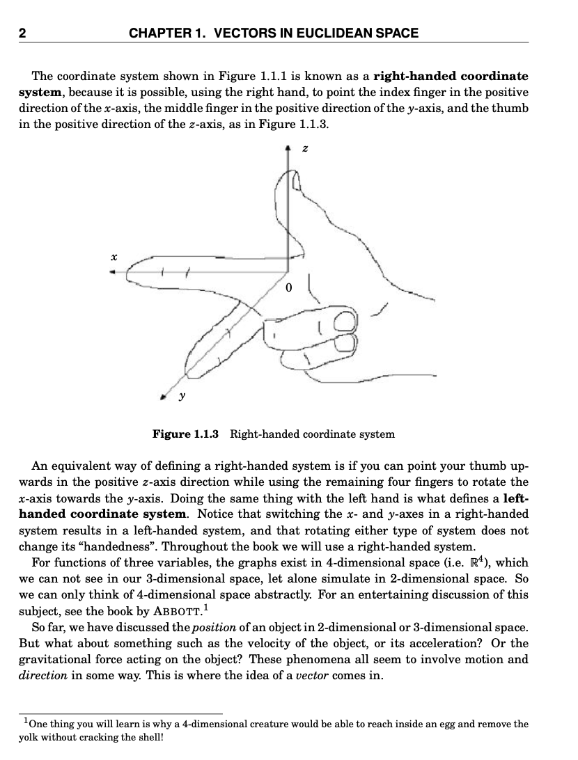 1. In a right-handed coordinate system, which finger points in the positive direction of the x-axis?
